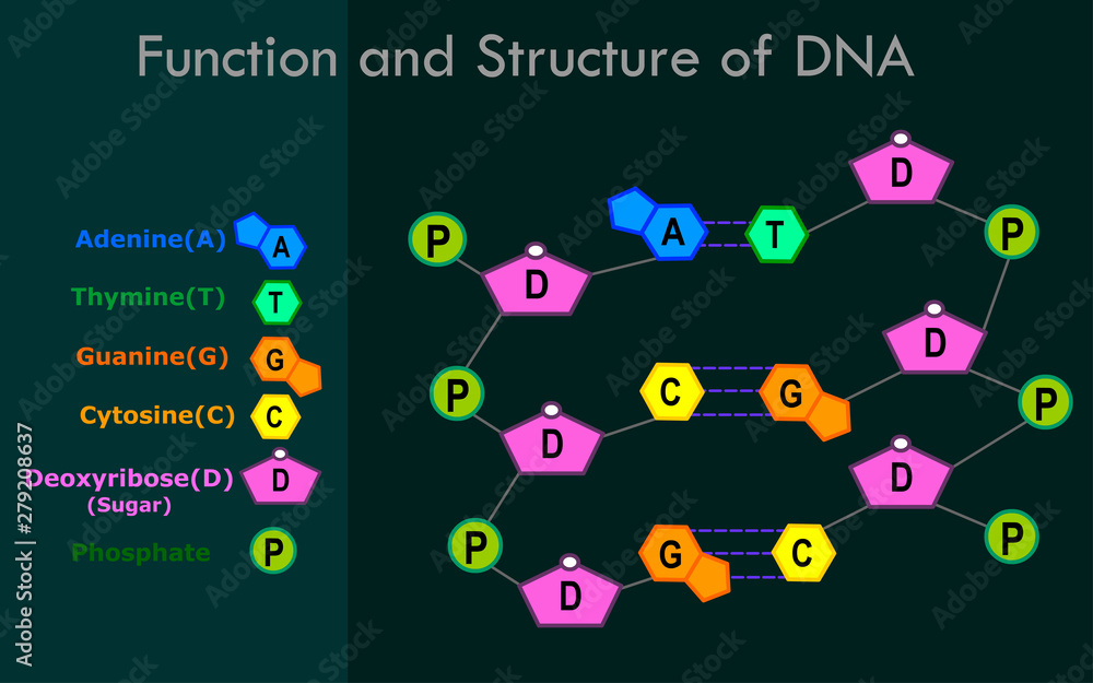 Covalent Bond Dna Structure Dna Function Diagram Strands Of Dna Are Made Of The Sugar And Phosphate Portions Of The Nucleotides Nitrogenous Bases Simple Annotated Dark Background 2d Vector Draw Stock Vector